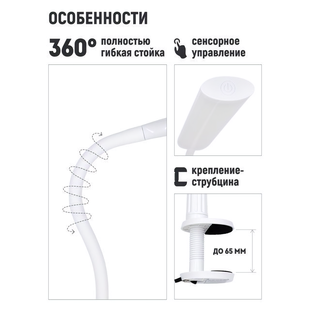 Светильник настольный свд 7Вт 5000К 480лм белый струбцина диммер сенсор