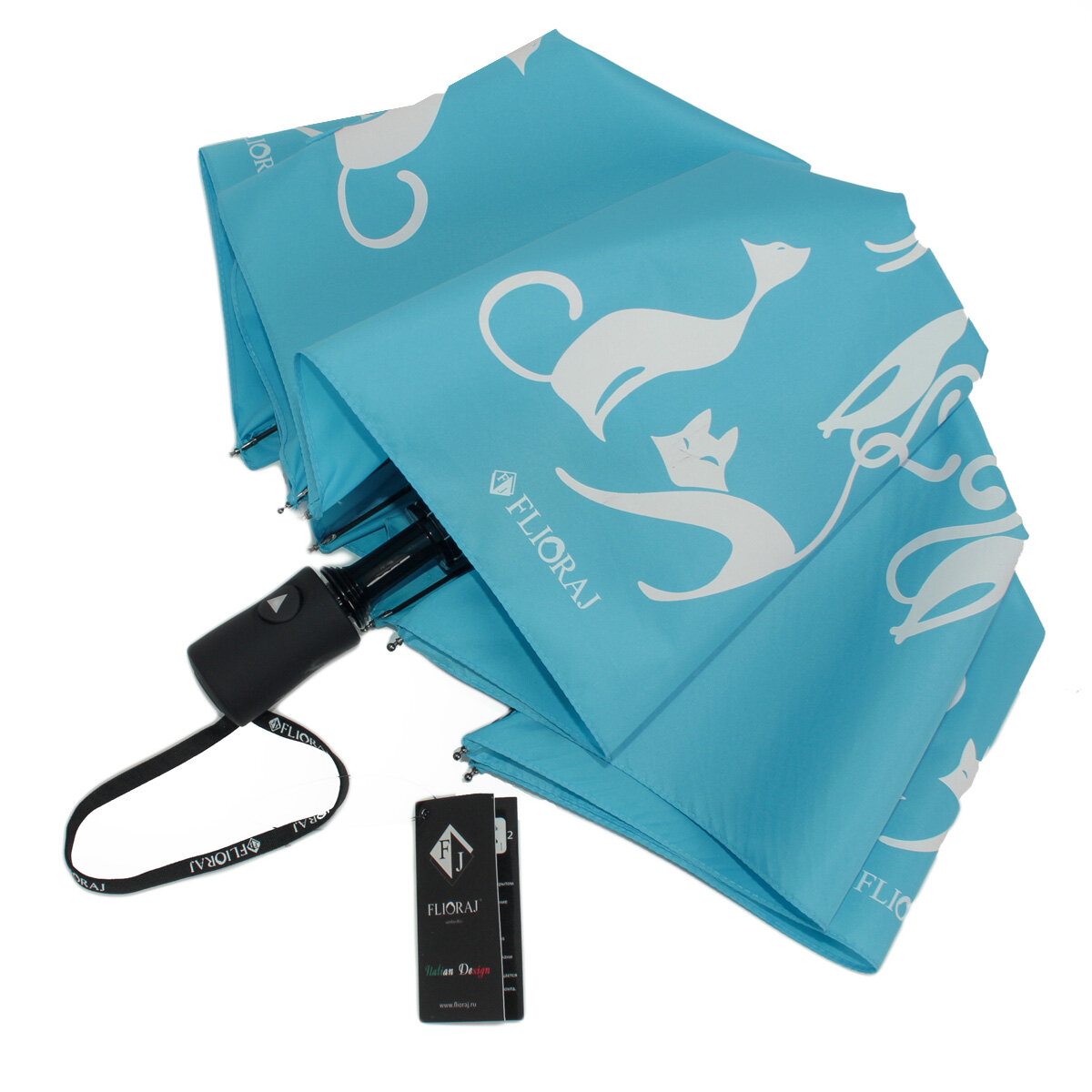 Зонт женский Flioraj Голубой 3 сложения Полуавтомат Антиветер 100617 FJ интересное: