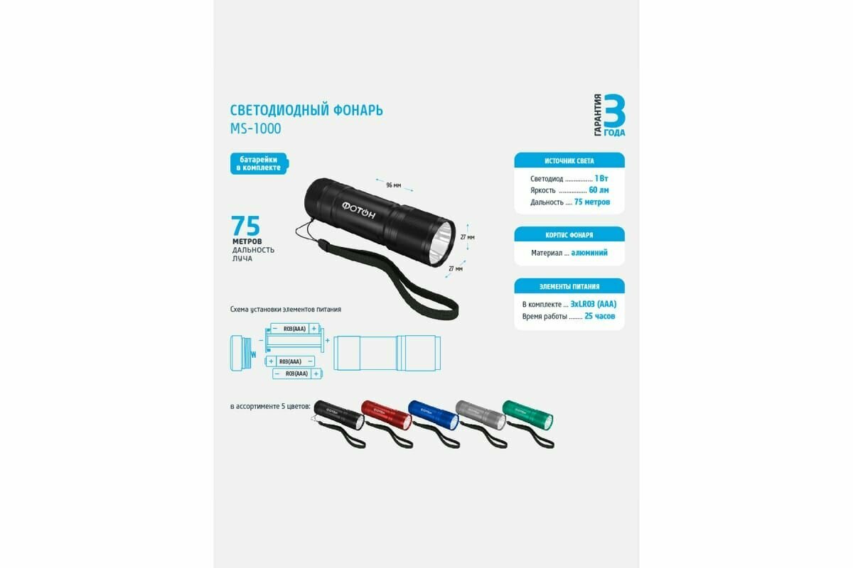 Светодиодный фонарь "фотон" MS-1000 черный интересное: