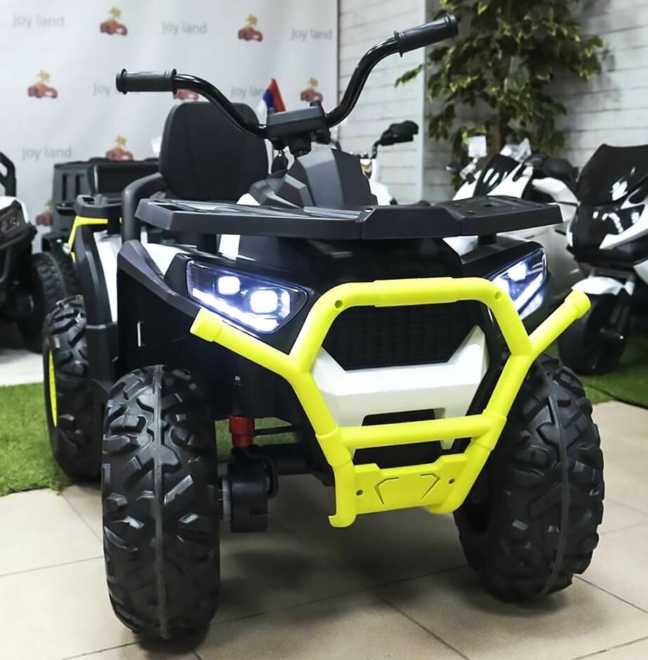 - 12В напряжение. Скажем так, что не будет тупить и тянуть как черепаха. Меньше вообще нет смысла. - Колёса EVA (вспененный полимерный композитный материал). Короче говоря - это как резина. Это достойно, так и должно быть, но часто делают просто пластиковые, что по мне так смешно. - Аккум работает примерно час без перерыва. Периодические покатушки растянут развлекалово на день. Почему я это вписал в достоинства? Потому что ЧАС для работы 2-х 12В двигателей ЭТО НОРМА, а значит тут не обманули. Когда из магазина придёт, увидите перед сборкой аккумулятор под сидением. Возможность "прокачать" квадрик имеется, если взять, например, 2 аккумулятора от APC (Источник бесперебойного питания. Для компов обычно используют). - Внешний вид шикарен - Музыка с флэшки ;-) Не забываемо, когда ребёнок едет в косухе детской под "коррозию металла" :D |