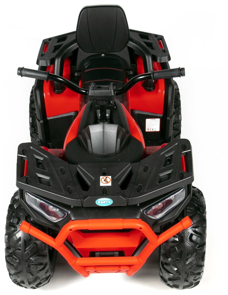 - 12В напряжение. Скажем так, что не будет тупить и тянуть как черепаха. Меньше вообще нет смысла. - Колёса EVA (вспененный полимерный композитный материал). Короче говоря - это как резина. Это достойно, так и должно быть, но часто делают просто пластиковые, что по мне так смешно. - Аккум работает примерно час без перерыва. Периодические покатушки растянут развлекалово на день. Почему я это вписал в достоинства? Потому что ЧАС для работы 2-х 12В двигателей ЭТО НОРМА, а значит тут не обманули. Когда из магазина придёт, увидите перед сборкой аккумулятор под сидением. Возможность "прокачать" квадрик имеется, если взять, например, 2 аккумулятора от APC (Источник бесперебойного питания. Для компов обычно используют). - Внешний вид шикарен - Музыка с флэшки ;-) Не забываемо, когда ребёнок едет в косухе детской под "коррозию металла" :D |