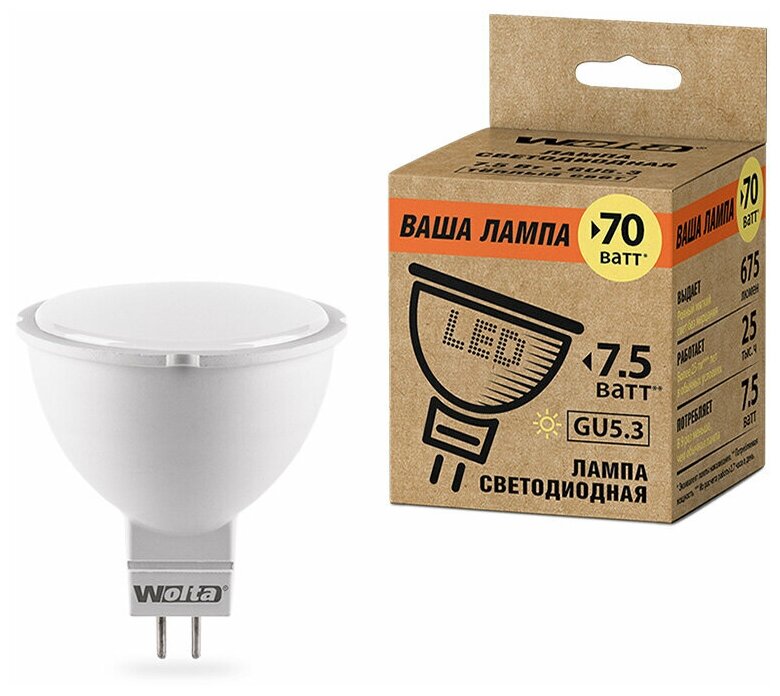 Лампа светодиодная WOLTA MR16 7.5Вт 3000К 625лм GU5.3