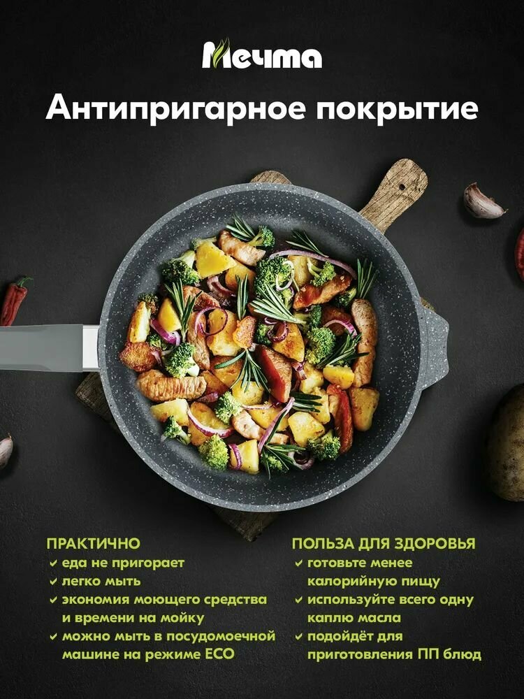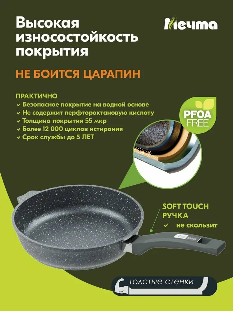 СохранитьСковорода Мечта с антипригарным покрытием, из алюминия, диаметром 30см / сковородка для газовых и электрических плит интересное: