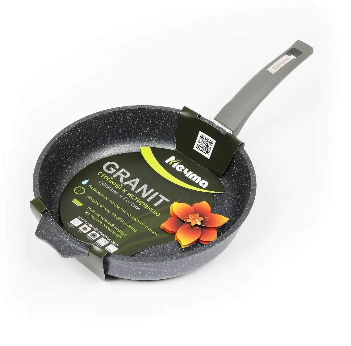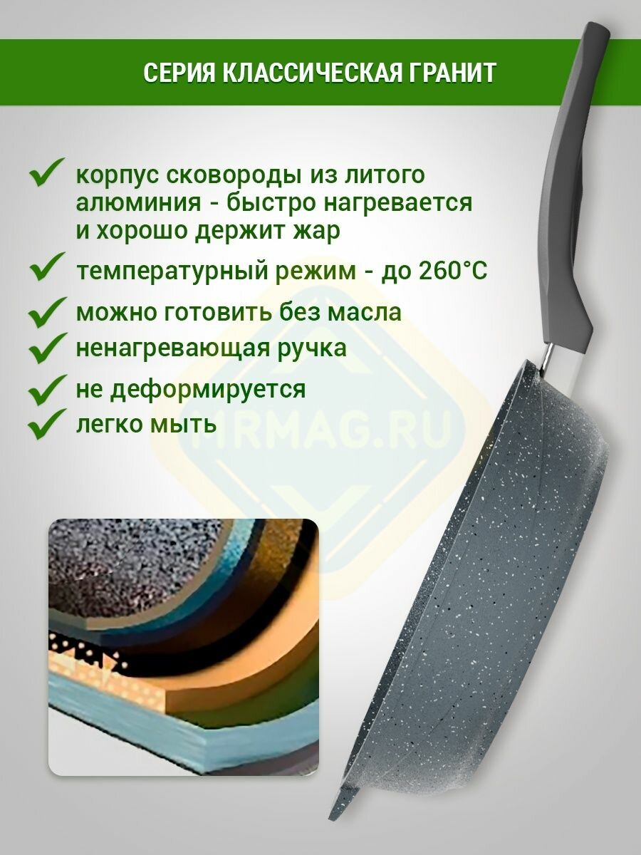 Сковорода "Мечта" 30см Гранит с антипригарным покрытием с несъемной ручкой, можно мыть в посудомоечной машине