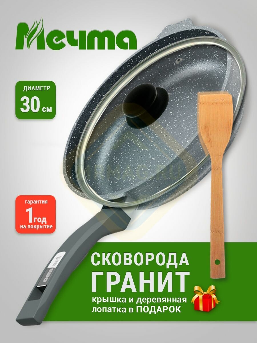 Сковорода Мечта 30 см Гранит с антипригарным покрытием с несъемной ручкой, НЕ индукционная
