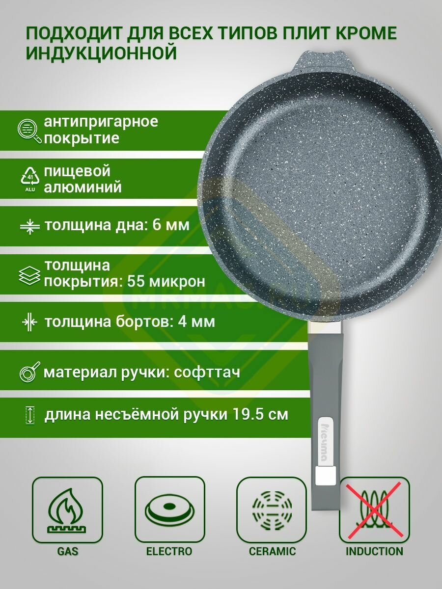Сковорода "Мечта" 30см Гранит с антипригарным покрытием со съемной ручкой, можно мыть в посудомоечной машине