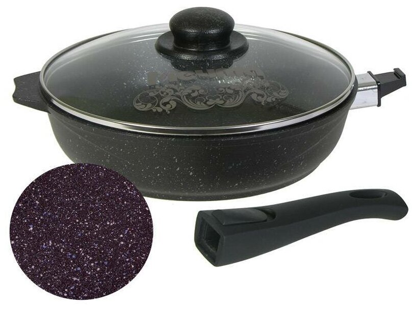 Сковорода мечта посуда Мечта Гранит black со съемной ручкой и стеклянной крышкой, 28 см, арт. с028802