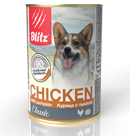 BLITZ Classic Консервы для собак всех пород и возрастов Курица с Тыквой 400г