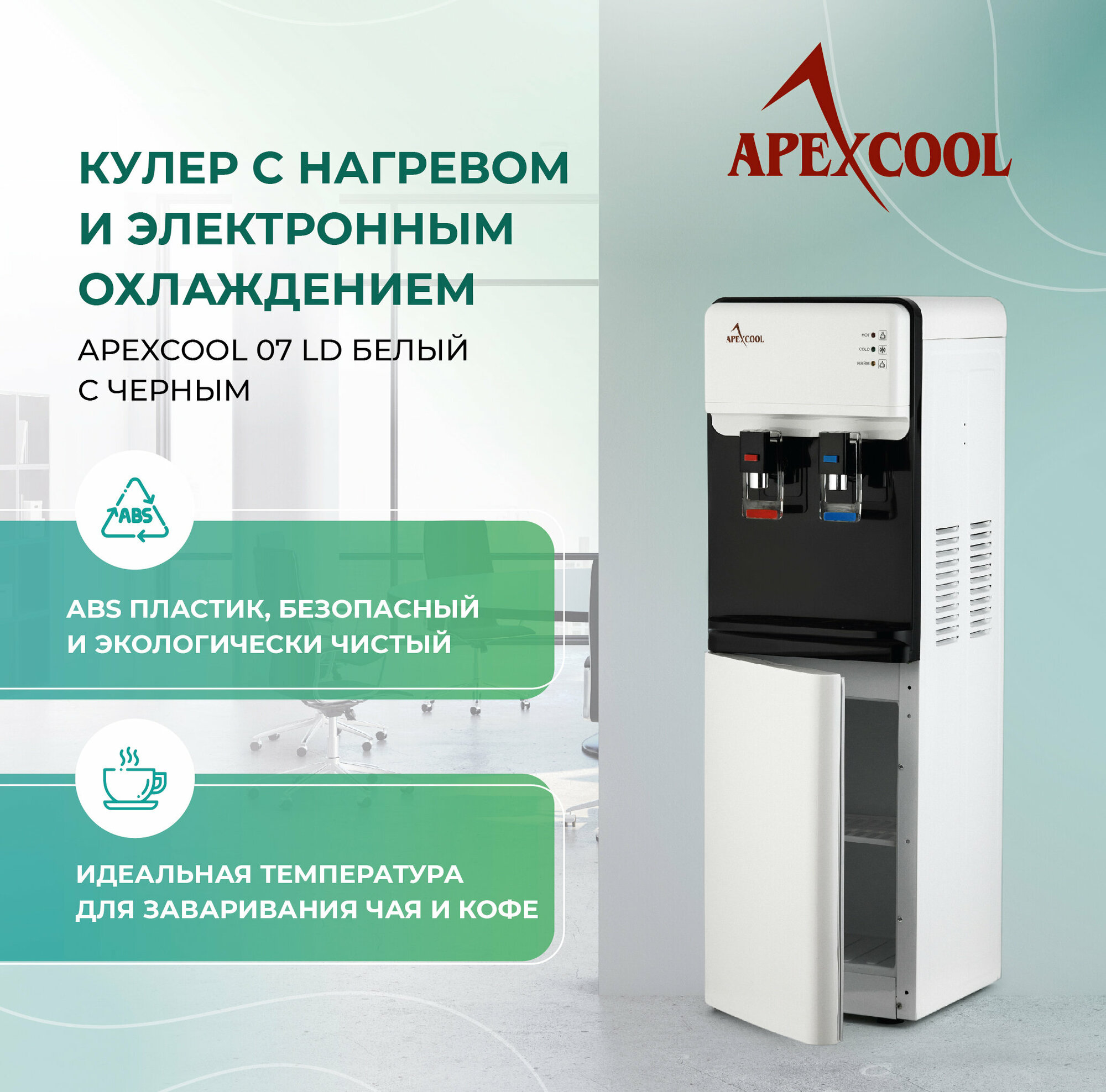 Кулер для воды APEXCOOL 07 LD, нагрев и охлаждение, 550/70 Вт, бело-чёрный
