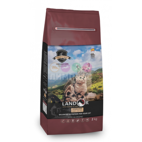 LANDOR CAT ADULT STERILIZED RABBIT & RICE для взрослых кастрированных котов и стерилизованных кошек с кроликом и рисом (10 кг)