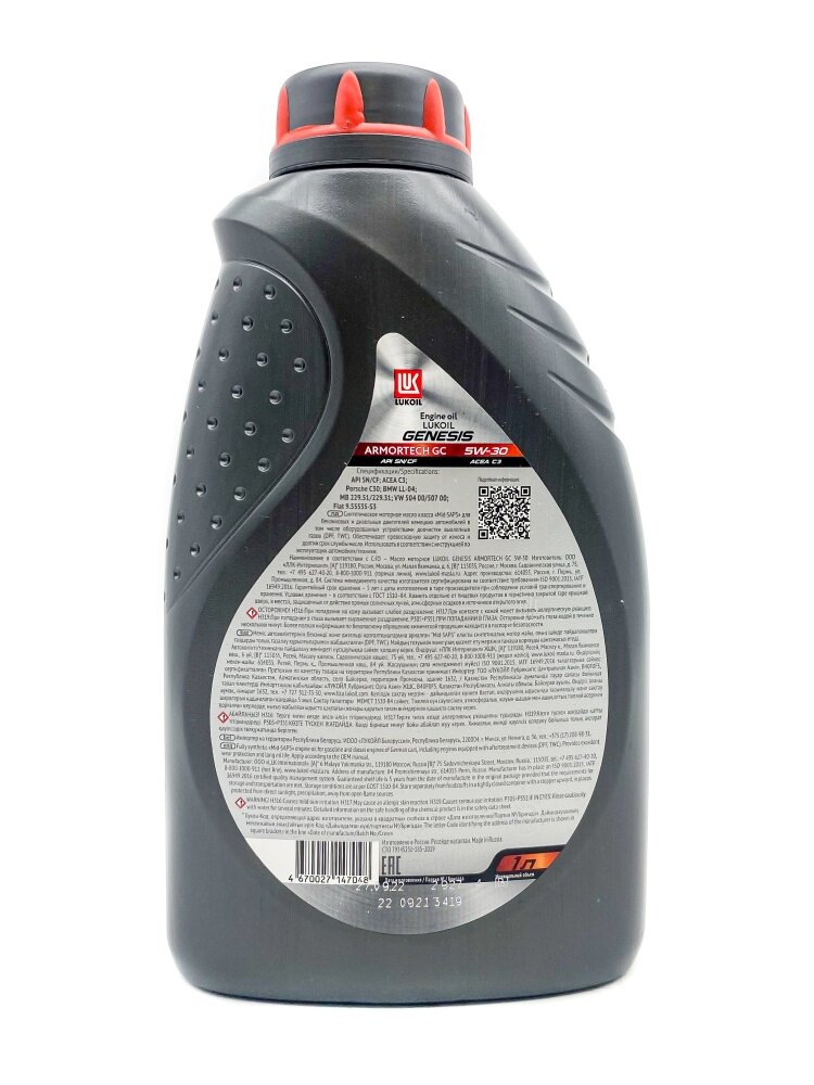 лукойл genesis armortech gc 5w-30 (1л) api sn acea c3 vw 504 00/507 00 bmw ll-04 mb-approval 229.51 porsche c30