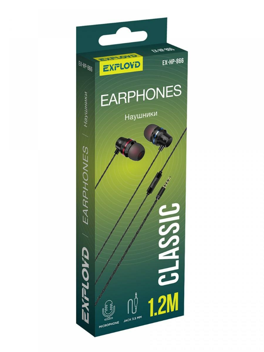 Наушники внутриканальные Exployd 3.5mm чёрный 1.2М Classic EX-HP-866, шт