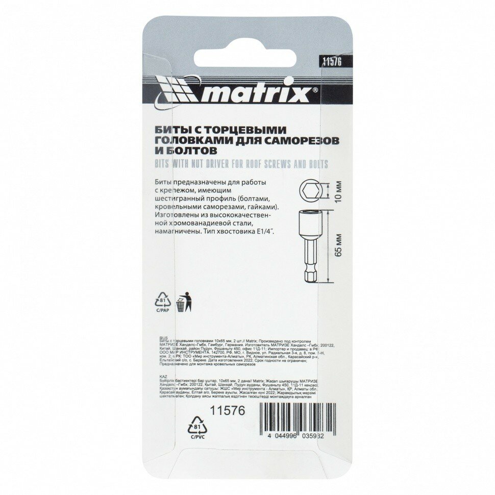 Биты с торцевыми головками Matrix, 10 x 65 мм, 2 шт