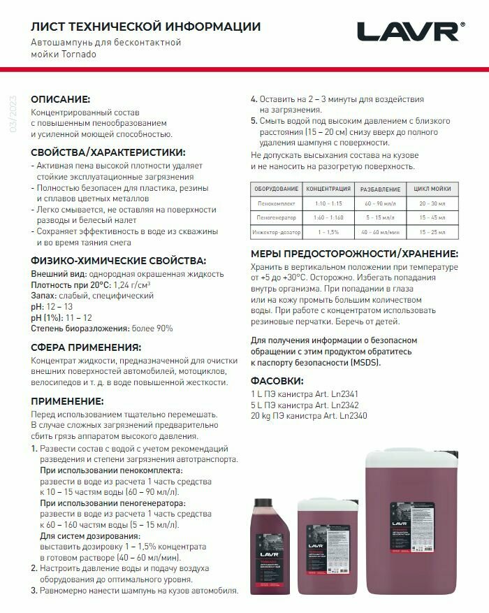 Автошампунь Для Бесконтактной Мойки Tornado Заменён На Ln2343 LAVR арт. LN2342