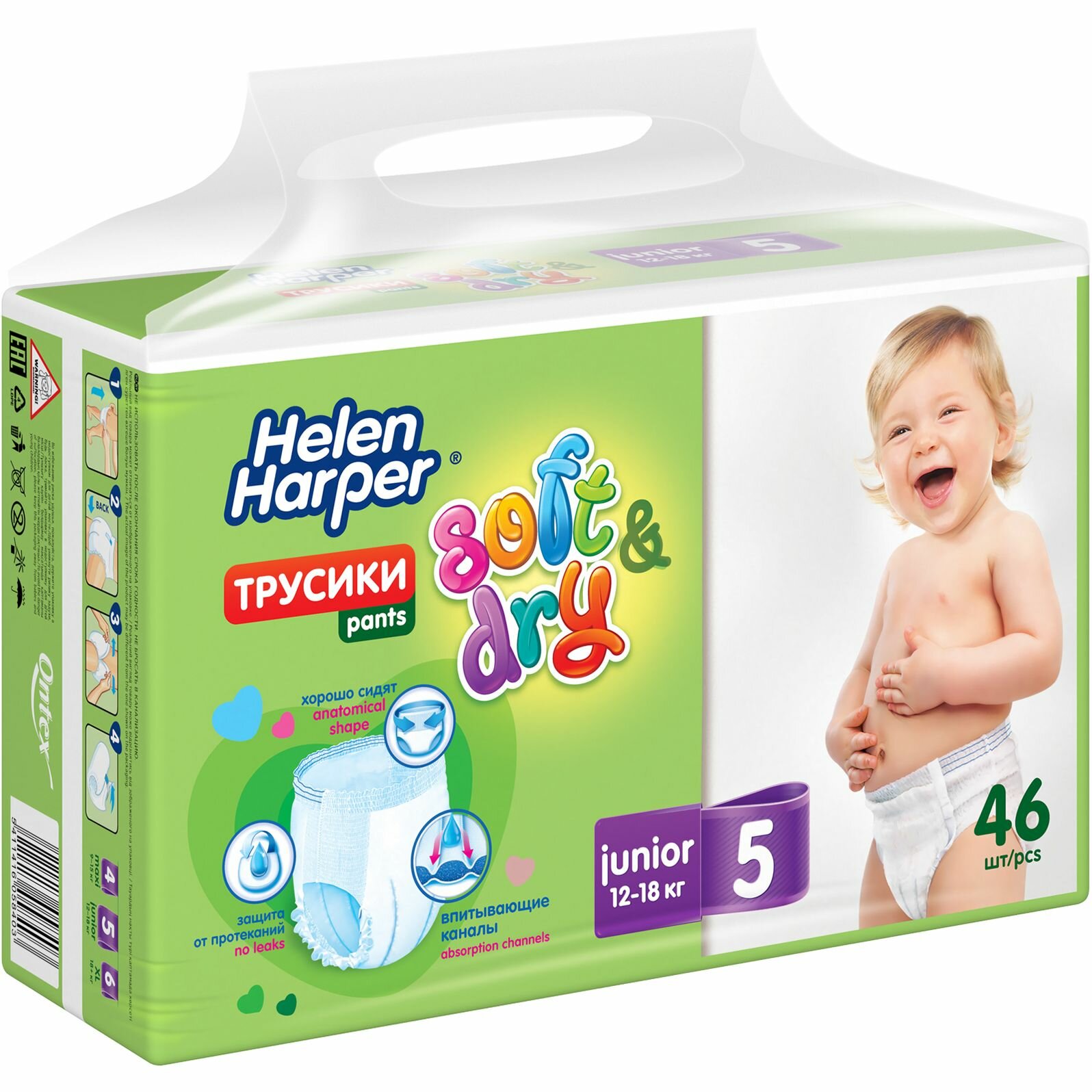 HELEN HARPER Детские трусики-подгузники Soft&Dry размер 5 (Junior) 12-18 кг, 46 шт.