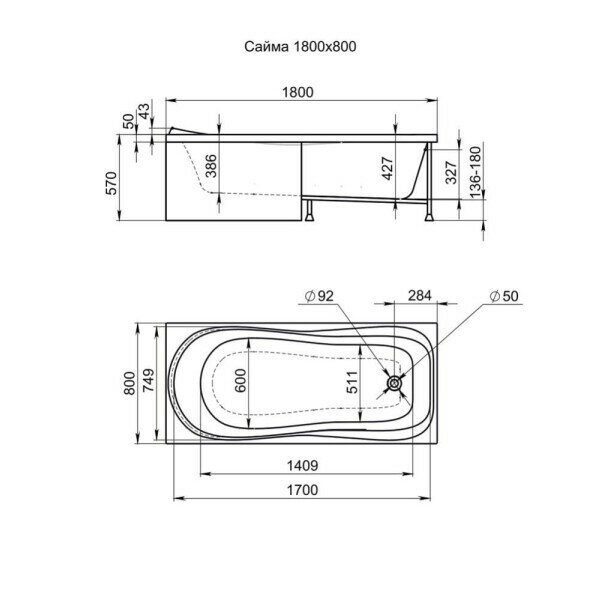 Акриловая ванна 180x80 см Alex Baitler Saima SAIMA 180*80