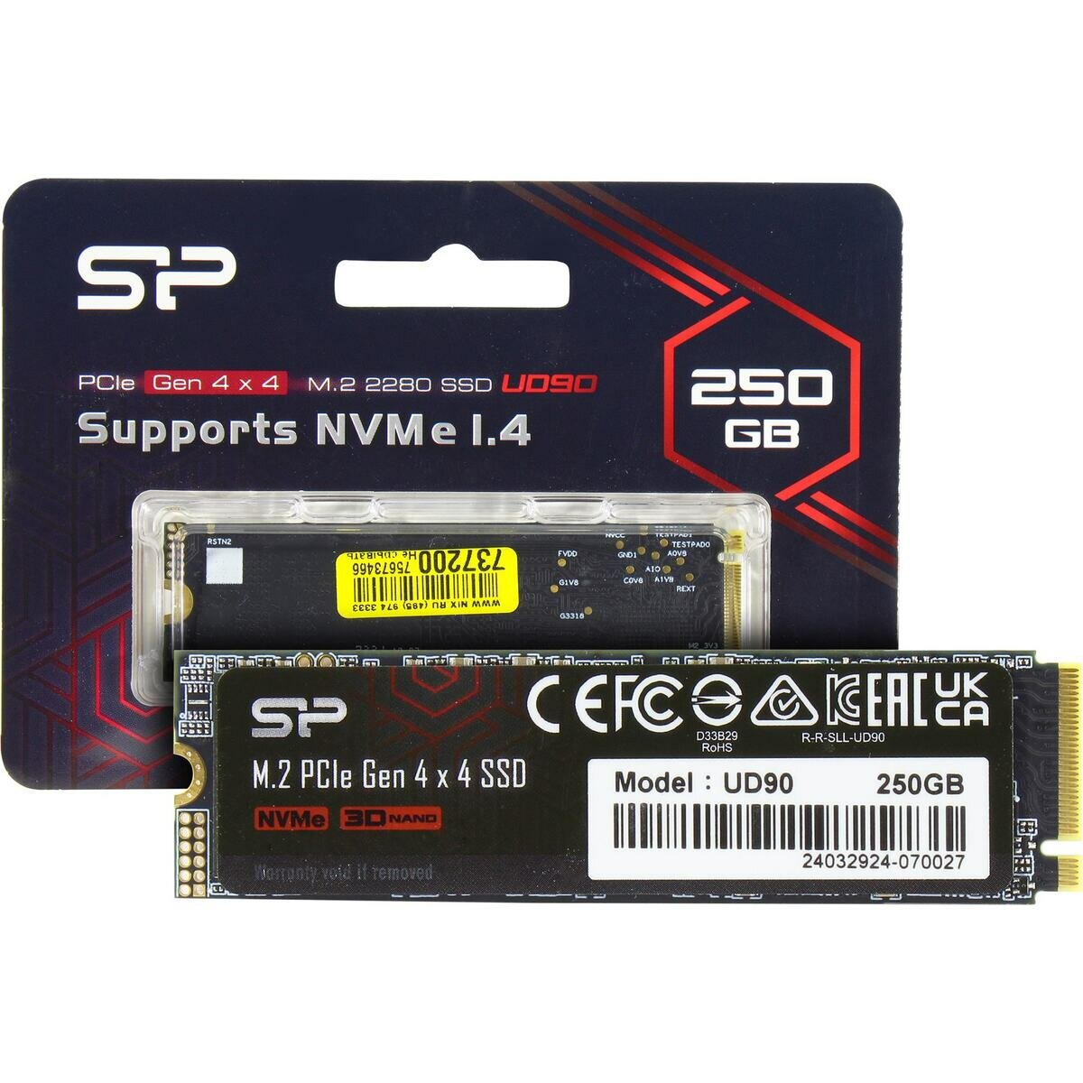 SSD диск SILICON POWER M.2 UD90 250 Гб PCI-E x4, 3D TLC (SP250GBP44UD9005)