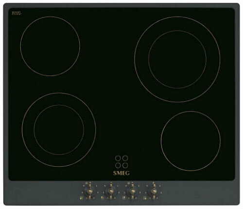 Варочная панель Smeg Электрическая, Coloniale,Стеклокерамическая 60 см, рамка кремовая, фурнитура латунная