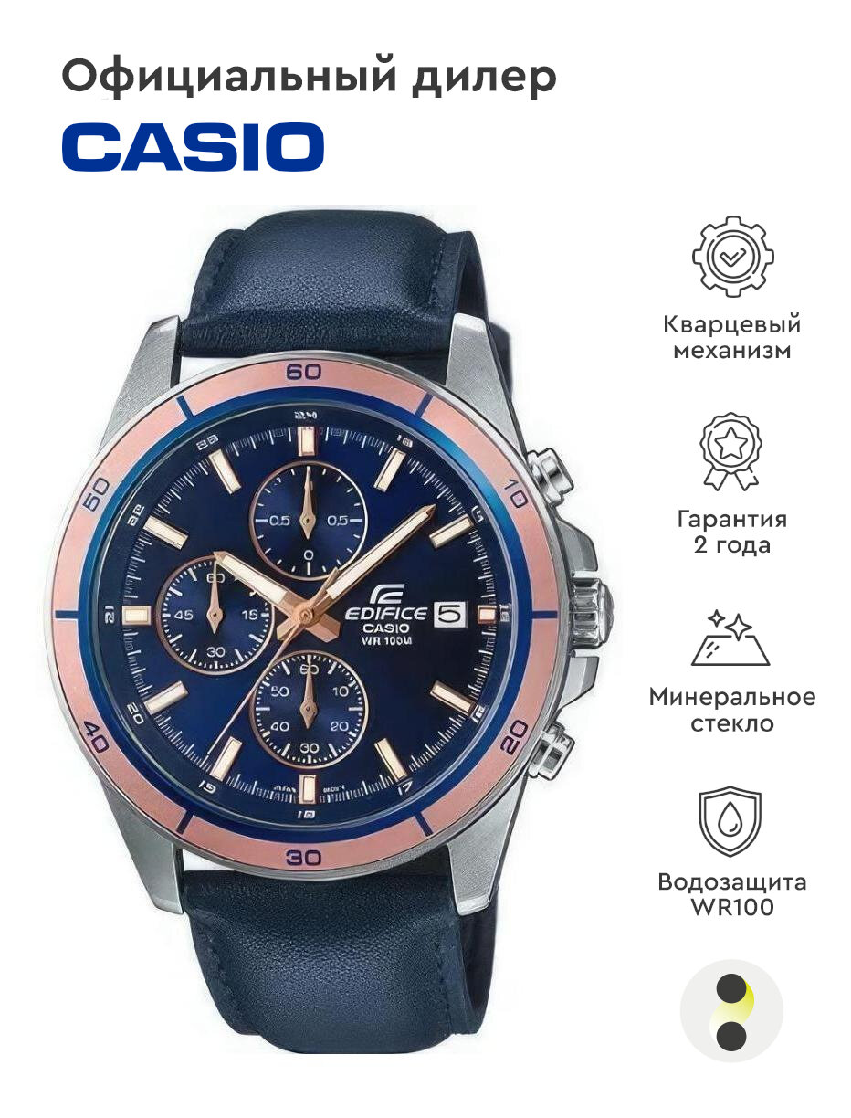 Японские кварцевые часы Casio Edifice EFR-526L-2A на кожанном браслете, с водозащитой 10 бар и международной гарантией от производителя