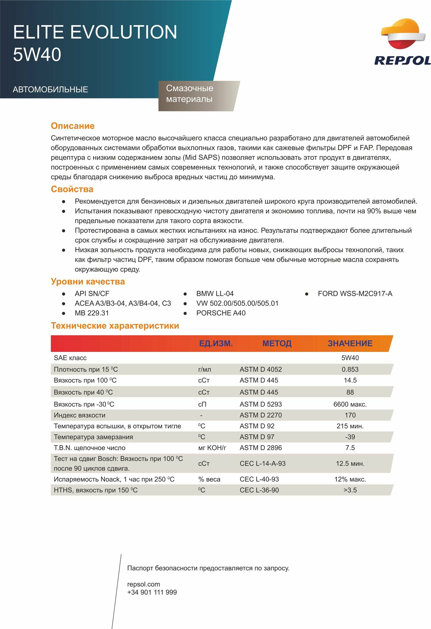 Repsol Rp Elite Evolution 5w-40 (4л) Acea A3/B3-04,A3/B4-04, C3, Mb 229.31, Bmw Ll-04, Vw 502.00/505.00/505