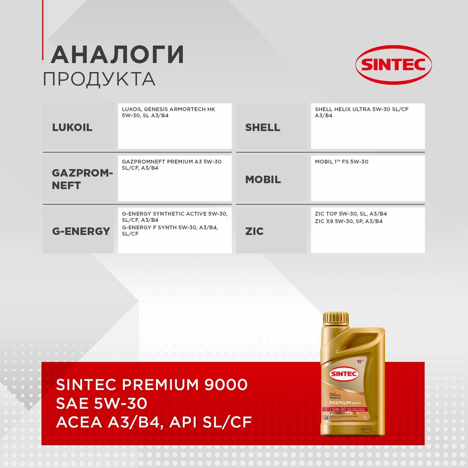 SINTEC Рњр°Сѓр»Рѕ Рјрѕс‚Рѕсђрѕрѕрµ 5W30 4Р» Sintec Premium 9000 A3/B4 Сѓрёрѕс‚Рµс‚Рёс‡Рµсѓрєрѕрµ