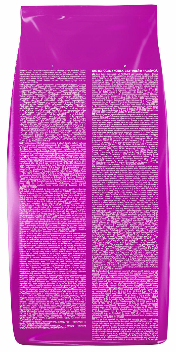WHISKAS аппетитный обед для взрослых кошек c говядиной с нежным паштетом (13,8 кг)