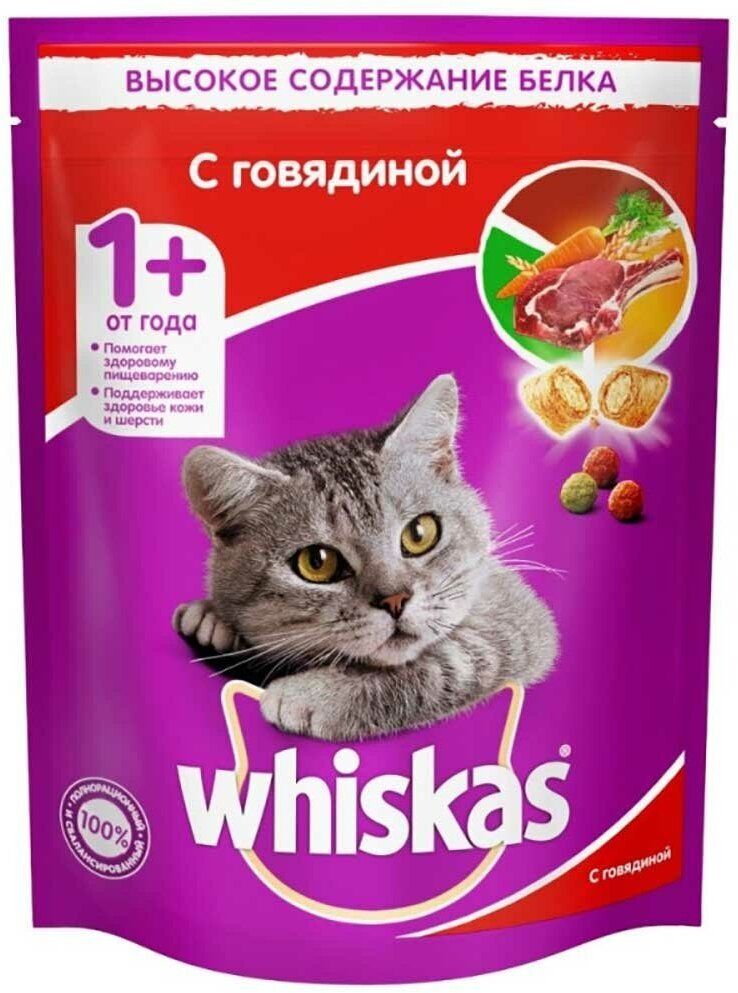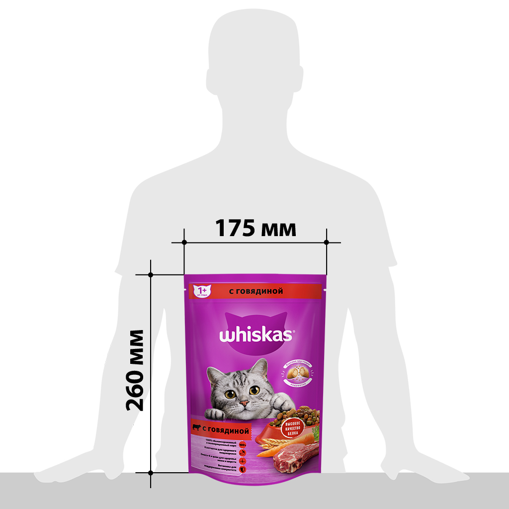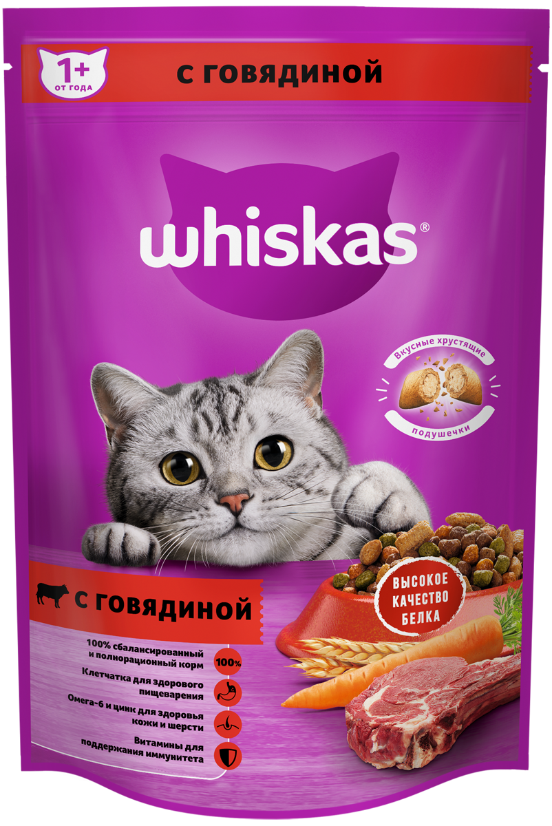Сухой корм Whiskas для кошек, говядина, подушечки, 350 г