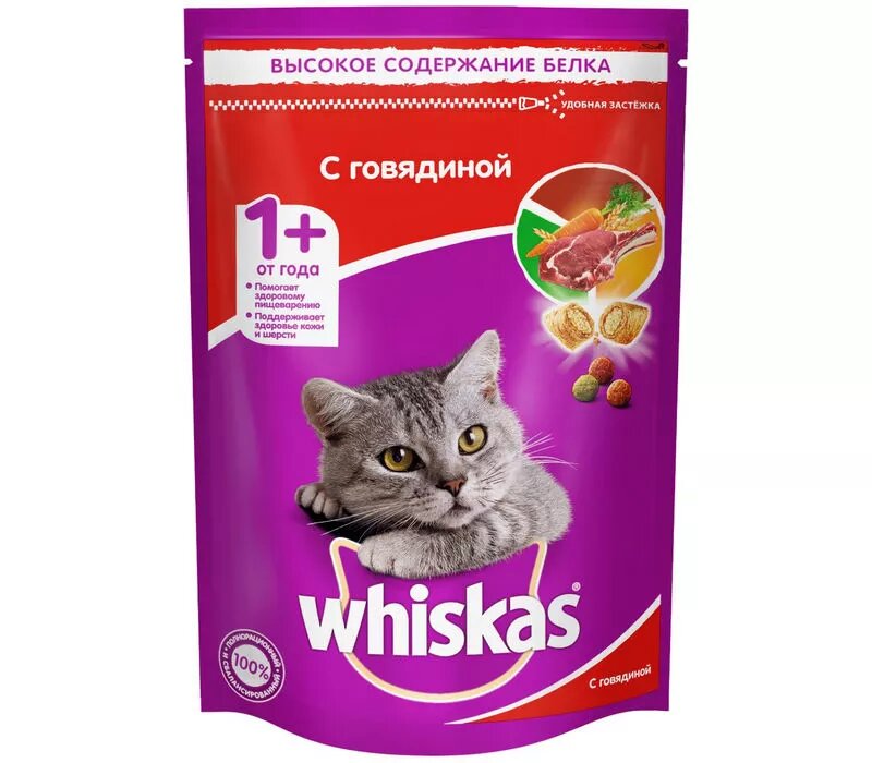 | Отзыв: | Почти год пользуюсь сухим кормом от Whiskas. Сначала это была курица, недавно добавила говядину. Моим двум кошкам нравится. Шерсть у них шелковистая, активность хорошая )) |