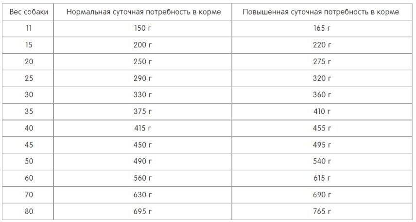 | Дозировка | - вес собаки 11 кг - 150 г - нормальная активность, 165 г - повышенная активность - вес собаки 15 кг - 200 г - нормальная активность, 220 г - повышенная активность - вес собаки 20 кг - 250 г - нормальная активность, 275 г - повышенная активность - вес собаки 25 кг - 290 г - нормальная активность, 320 г - повышенная активность - вес собаки 30 кг - 330 г - нормальная активность, 360 г - повышенная активность - вес собаки 35 кг - 375 г - нормальная активность, 410 г - повышенная активность - вес собаки 40 кг - 415 г - нормальная активность, 455 г - повышенная активность - вес собаки 45 кг - 450 г - нормальная активность, 495 г - повышенная активность - вес собаки 50 кг - 490 г - нормальная активность, 540 г - повышенная активность - вес собаки 60 кг - 560 г - нормальная активность, 615 г - повышенная активность - вес собаки 70 кг - 630 г - нормальная активность, 690 г - повышенная активность - вес собаки 80 кг - 695 г - нормальная активность, 765 г - повышенная активность |