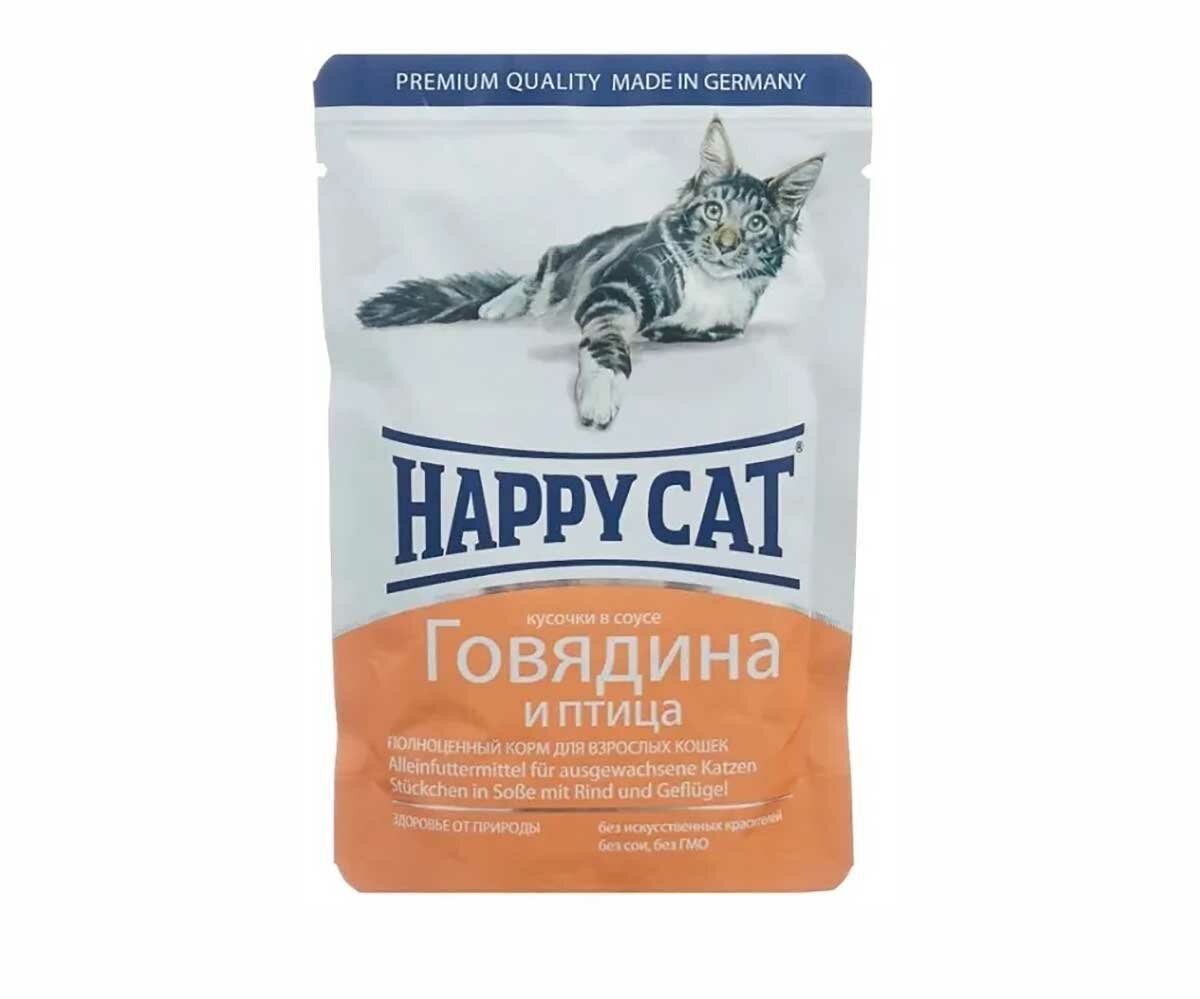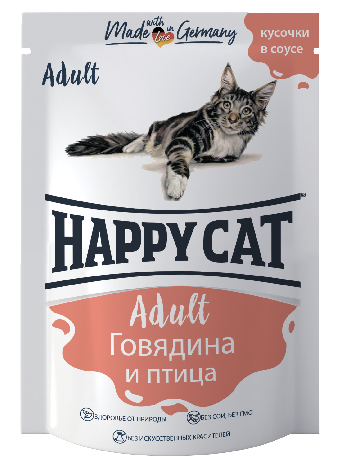 Влажный корм Happy Cat для кошек говядина и птица в соусе 100г интересное: