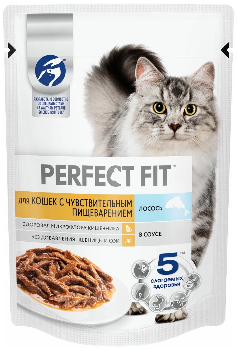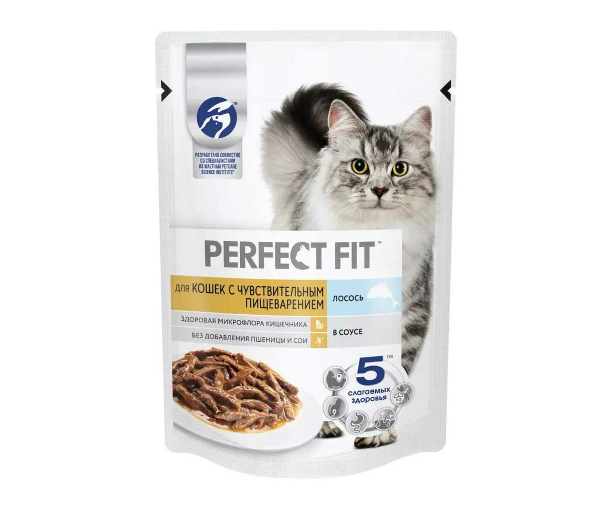Влажный корм Perfect Fit для кошек с чувствительным пищеварением лосось в соусе 75г интересное: