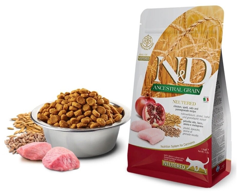 FARMINA CAT N&D ANCESTRAL GRAIN NEUTERED CHICKEN & POMEGRANATE низкозерновой для взрослых кастрированных котов и стерилизованных кошек с курицей и гранатом (1,5 кг)