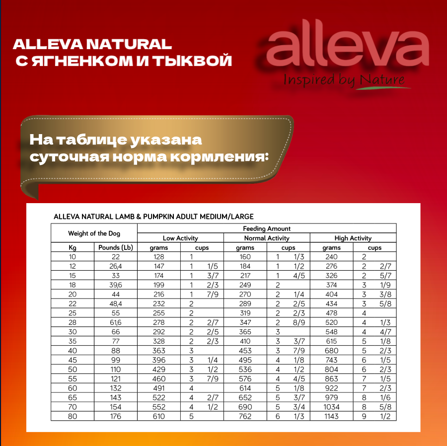 СохранитьALLEVA NATURAL ADULT DOG MEDIUM/MAXI LAMB & PUMPKIN низкозерновой для взрослых собак средних и крупных пород с ягненком и тыквой (12 кг) интересное: