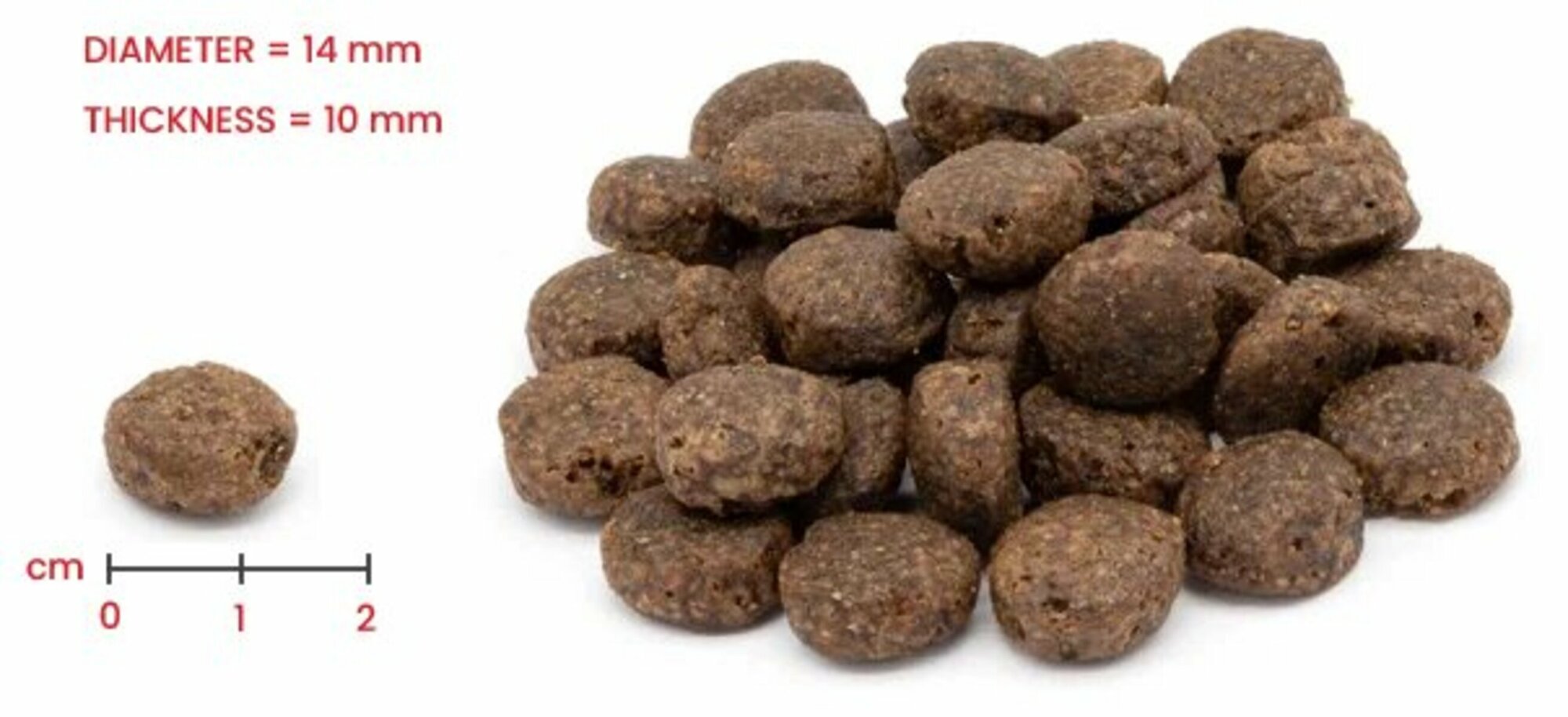 Этот сухой корм для собак средних и крупных пород, размер гранул соответствует весовой категории. Корм с отличным составом, премиум класса, не содержит в своем составе вредных добавок. Собака ест корм с большим удовольствием, будем покупать ещё, качеством и вкусом остались довольны! Спасибо производителю! |