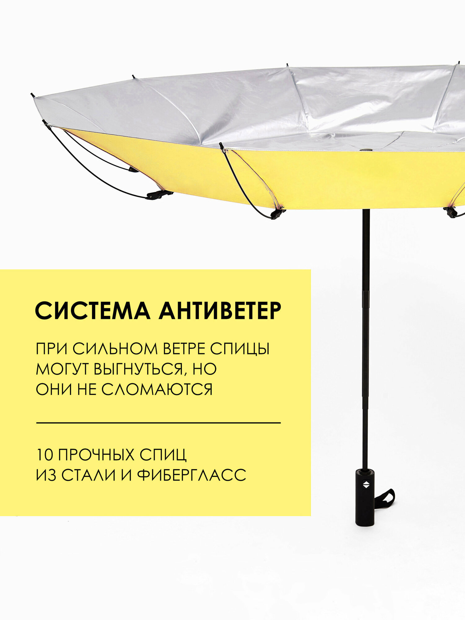 Зонт автомат двухсторонний обратного сложения желтый-серебристый