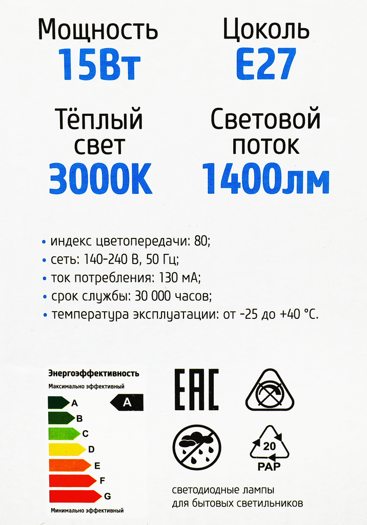 | Тип цоколя | E27 |