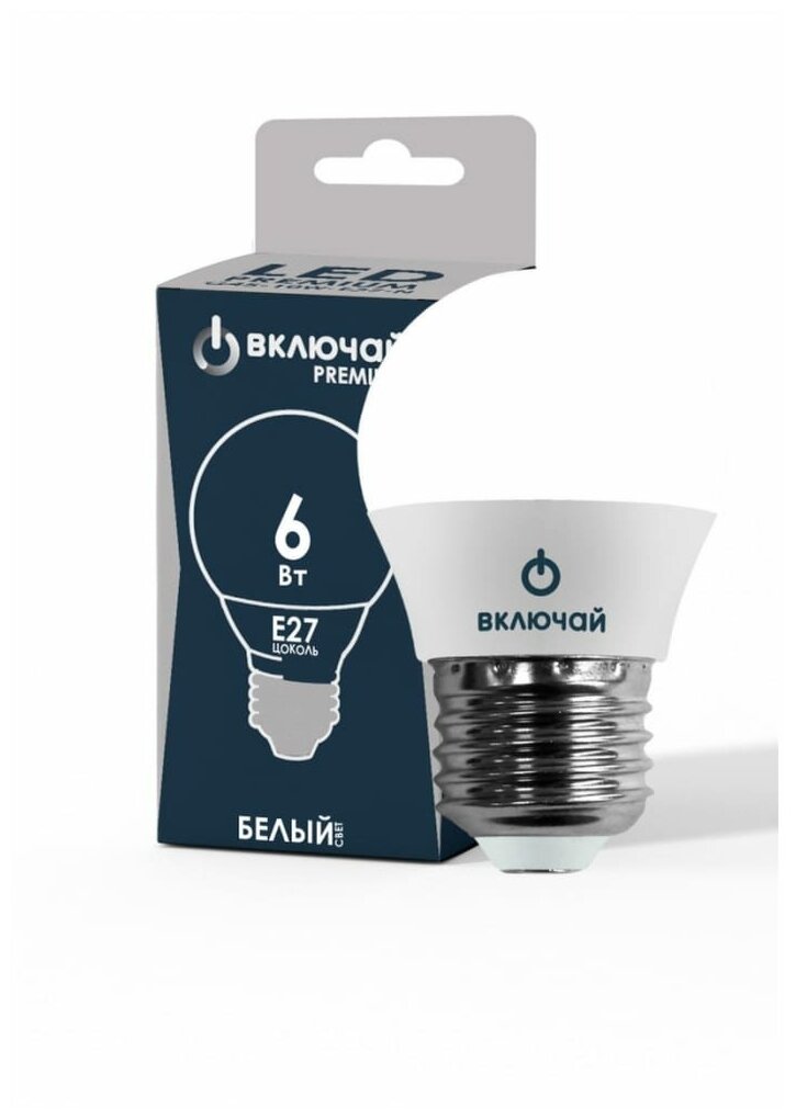 Светодиодная лампа Включай 6W E27 шарик 4000K 220V LED PREMIUM G45-6W-E27-W 1003895 интересное:
