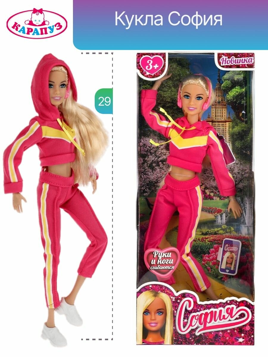 Кукла София 29 см. (руки и ноги сгибаются, спортивный костюм и наушники) в коробке