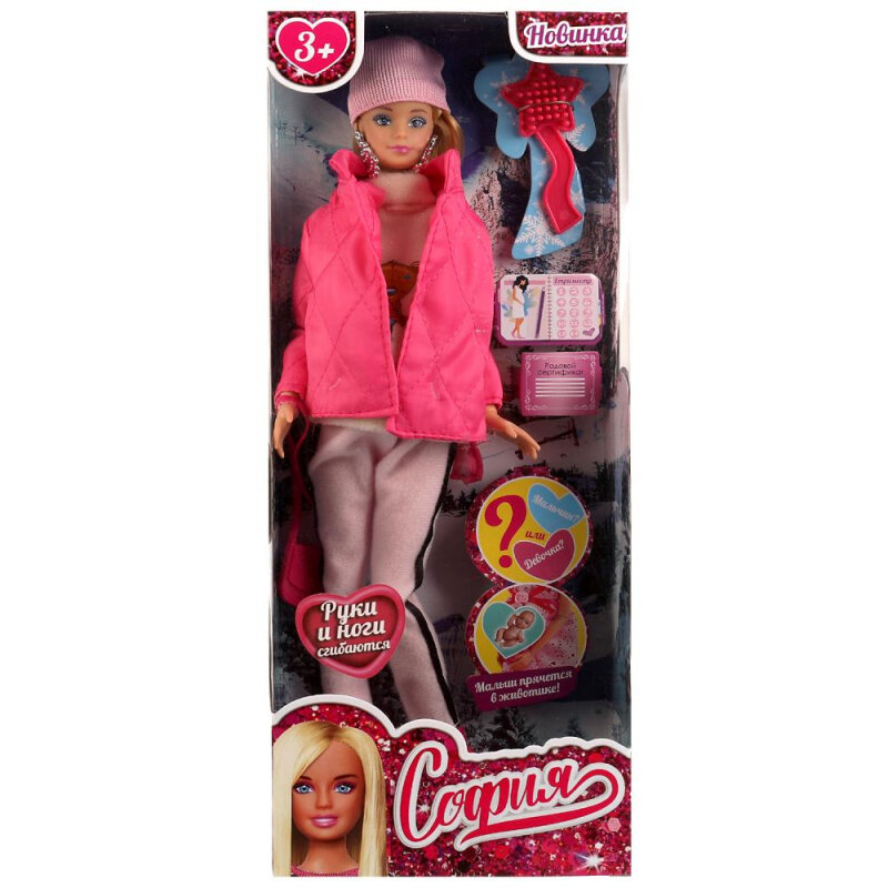 Кукла 29 см София беременная (руки и ноги сгиб, акс, зимняя одежда) в коробке