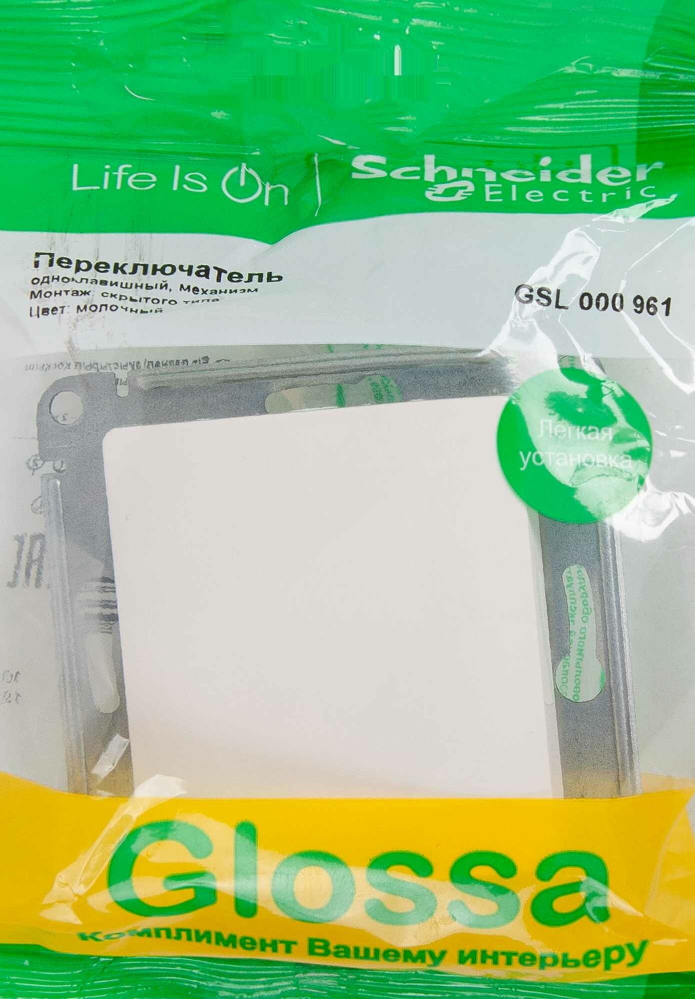 GLOSSA 1-клавишный переключатель, сх.6,10AX, механизм, молочный, SCHNEIDER ELECTRIC GSL000961 (1 шт.)