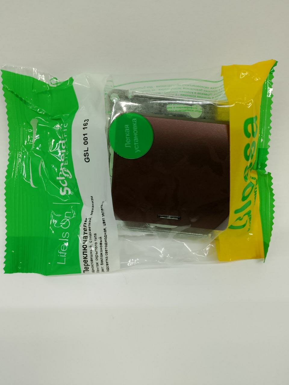 SE Glossa Шоколад Мех Переключатель 1-клавишный с подсветкой сх.6а, 10АХ GSL000863