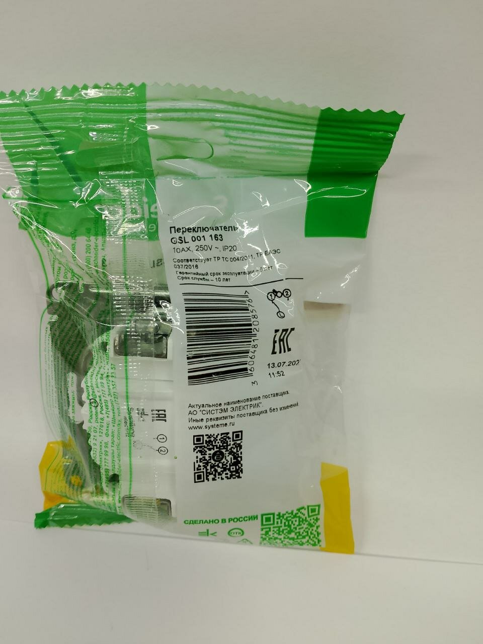 GLOSSA переключатель 1-клавишный с подсветкой сх.6а фисташковый GSL001063 Schneider Electric