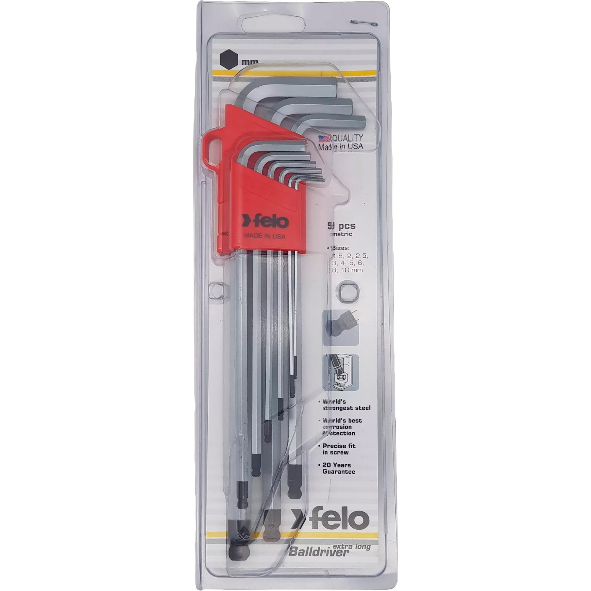 Набор шестигранных ключей Felo 36500901, с шаровым окончанием 9 шт