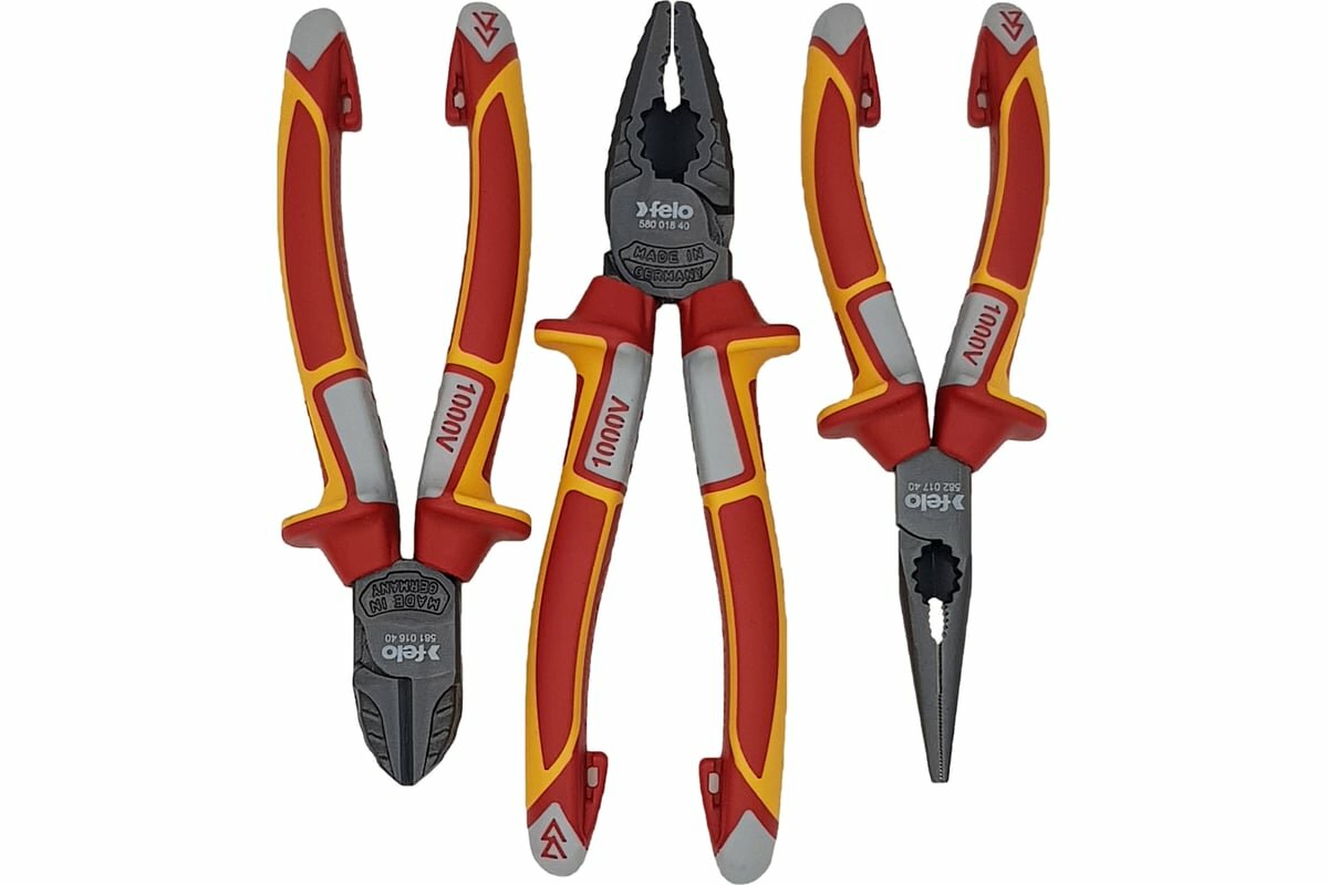 Купить Набор диэлектрических отверток Felo SL/PH/PZ E-Slim ERGONIC, бокорезов, плоскогубцев, длинногубцев, стриппера и отвертки тестера напряжения сети в сумке