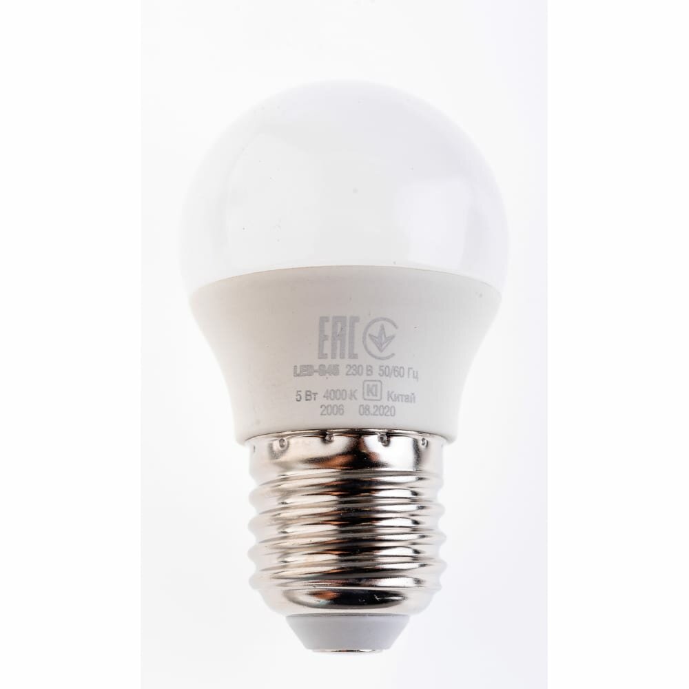 (5 шт.) Светодиодная лампочка IEK шар G45 E27 5W(450lm) 4000K 4K 78x45 матов. ECO LLE-G45-5-230-40-E27 . Цоколь E27