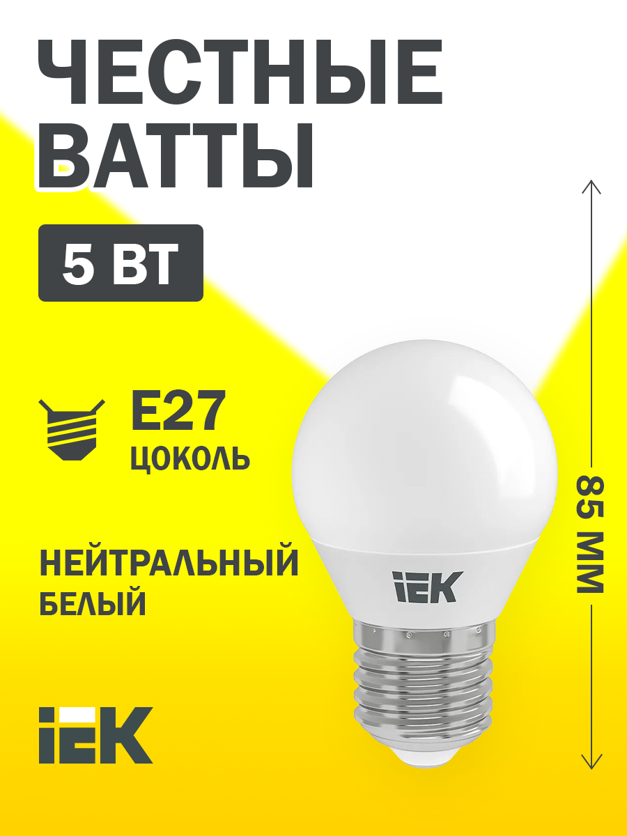 Светодиодная LED лампа IEK шар G45 E27 5W(450lm) 4000K 4K 78x45 матовая ECO LLE-G45-5-230-40-E27 (упаковка 10 штук)