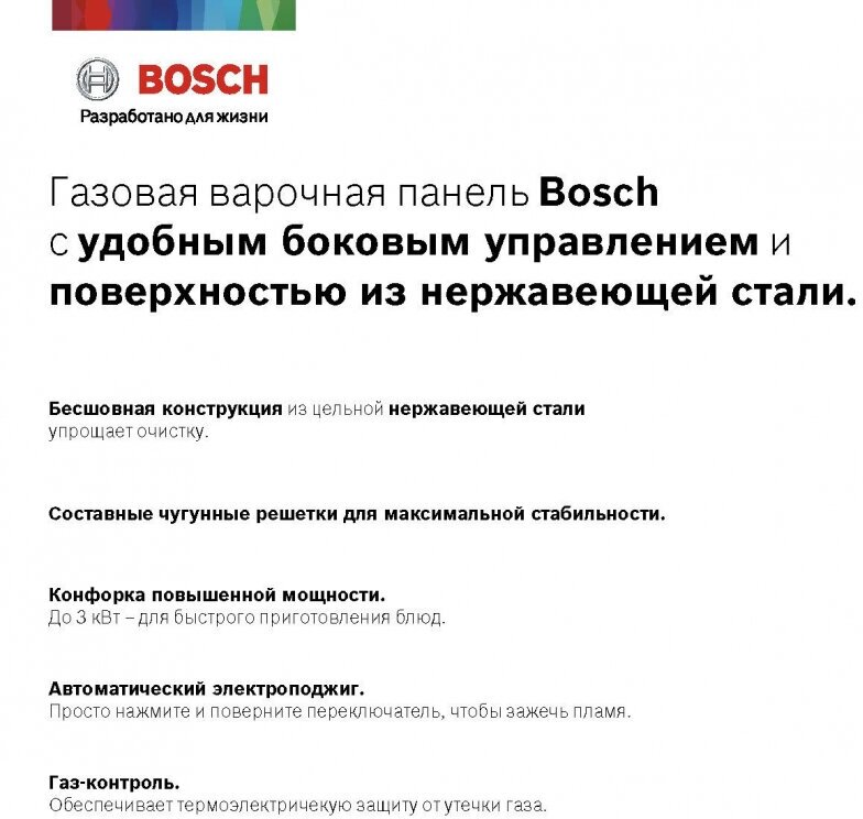 СохранитьВстраиваемая газовая варочная панель Bosch PBP6C5B93R интересное: