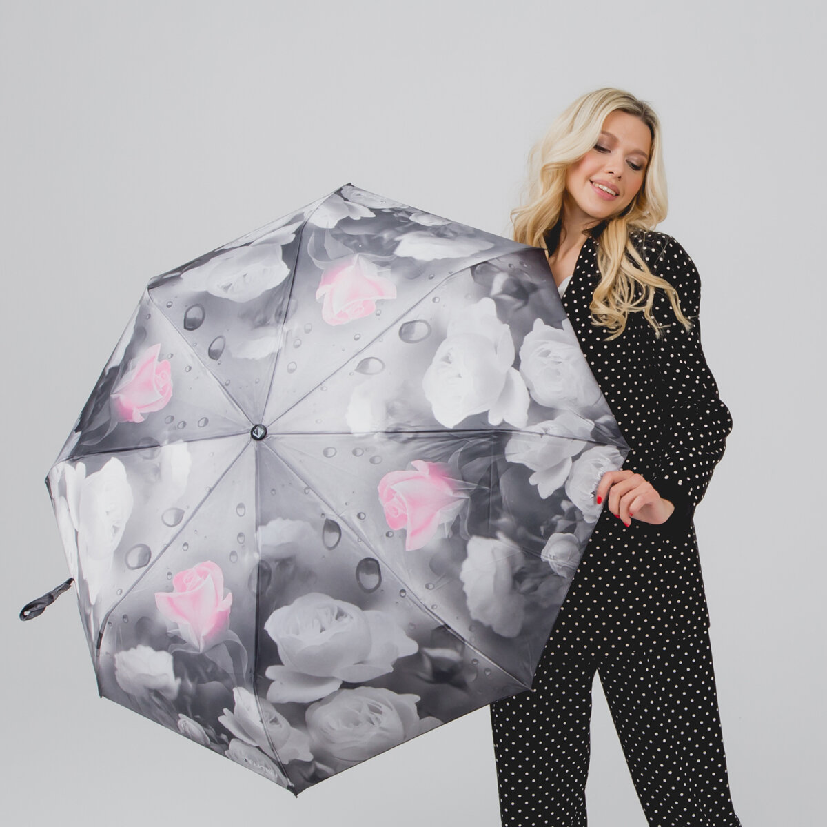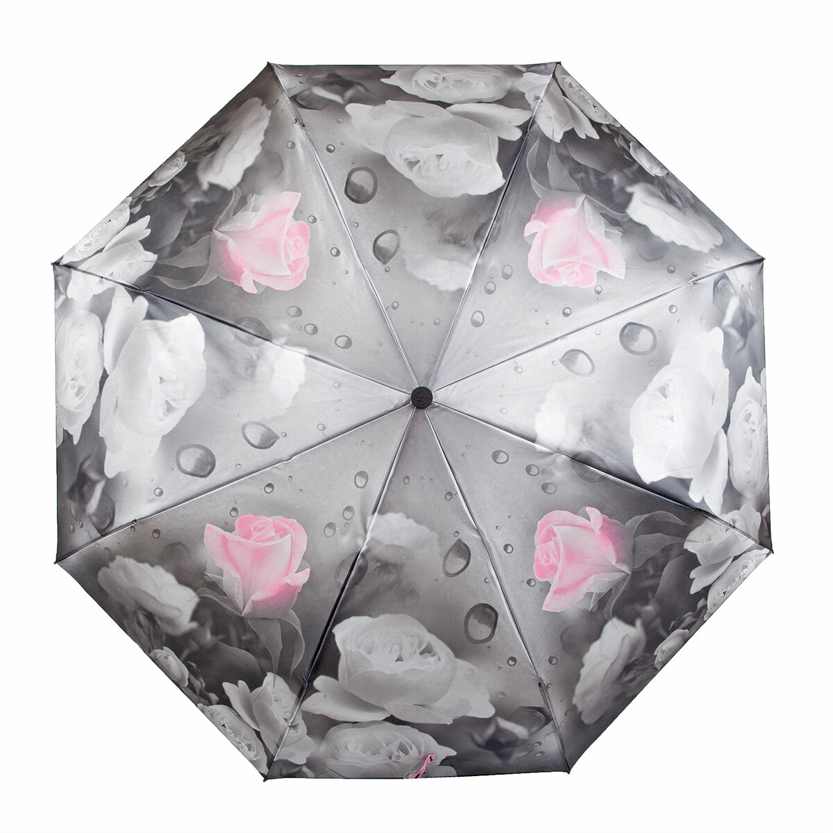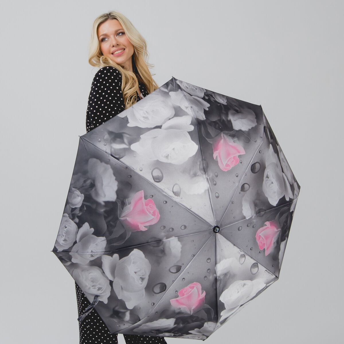Темно-серый складной зонт и розами Flioraj 190215 FJ