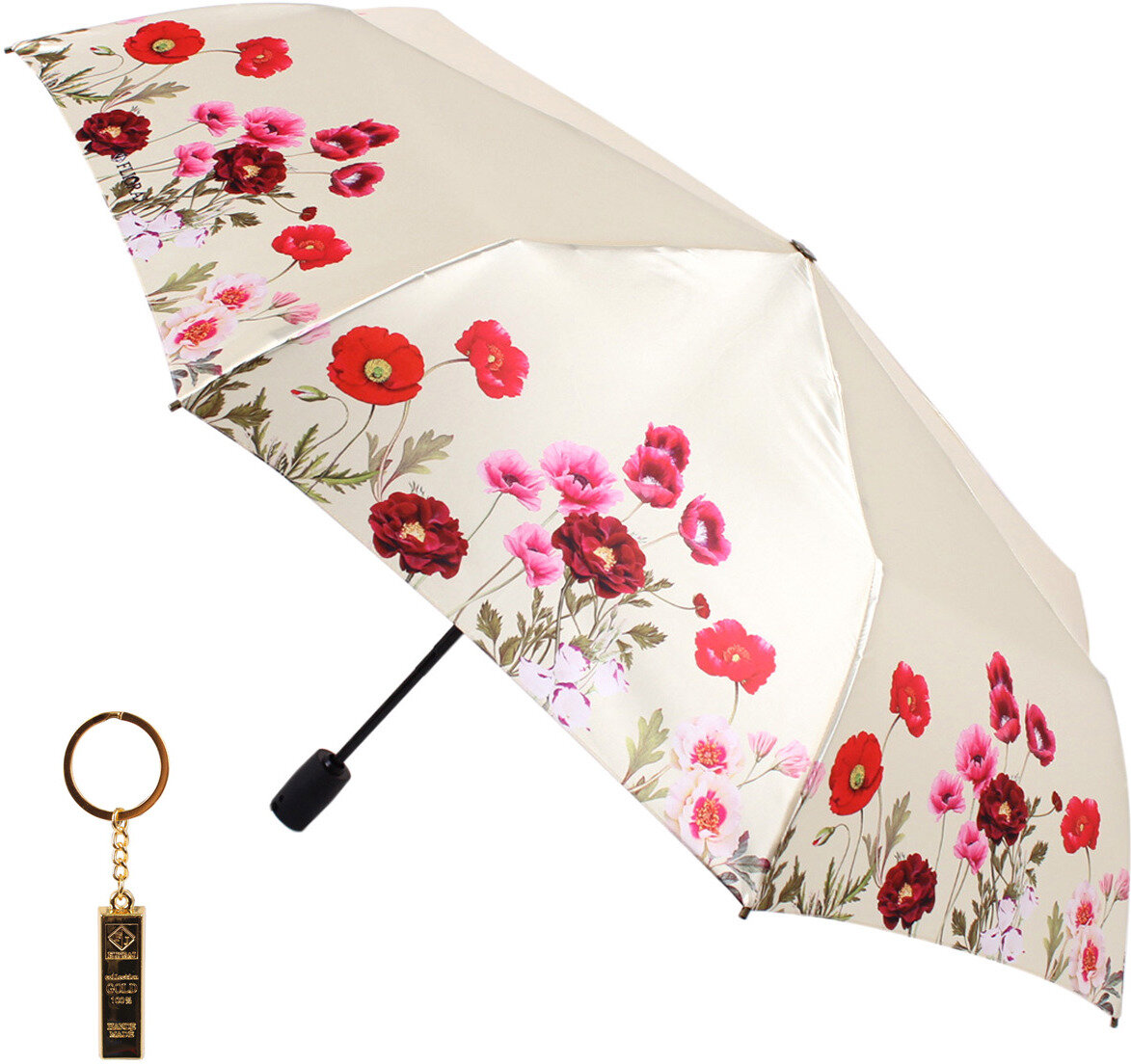Купить Зонт женский Flioraj Бежевый 3 сложения Автомат Антиветер с брелоком 23144 FJ