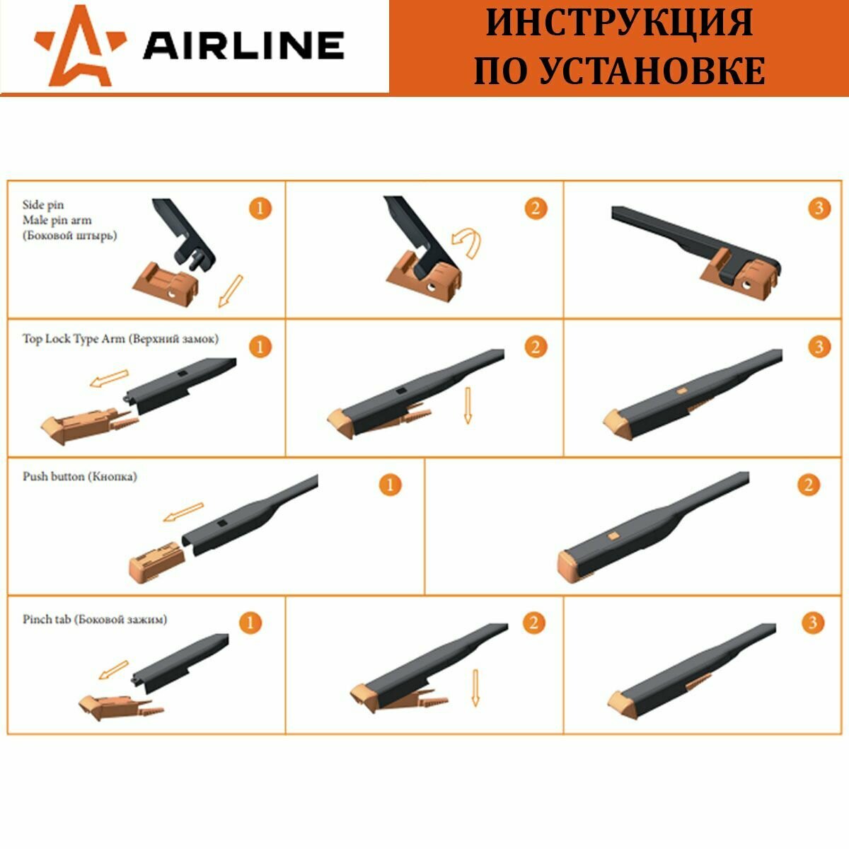 Щетка стеклоочистителя каркасная 600 мм AIRLINE AWBK600 для а/м BMW, Chevrolet, Ford, Hyundai, Kia, Nissan, Mazda, Volkswagen